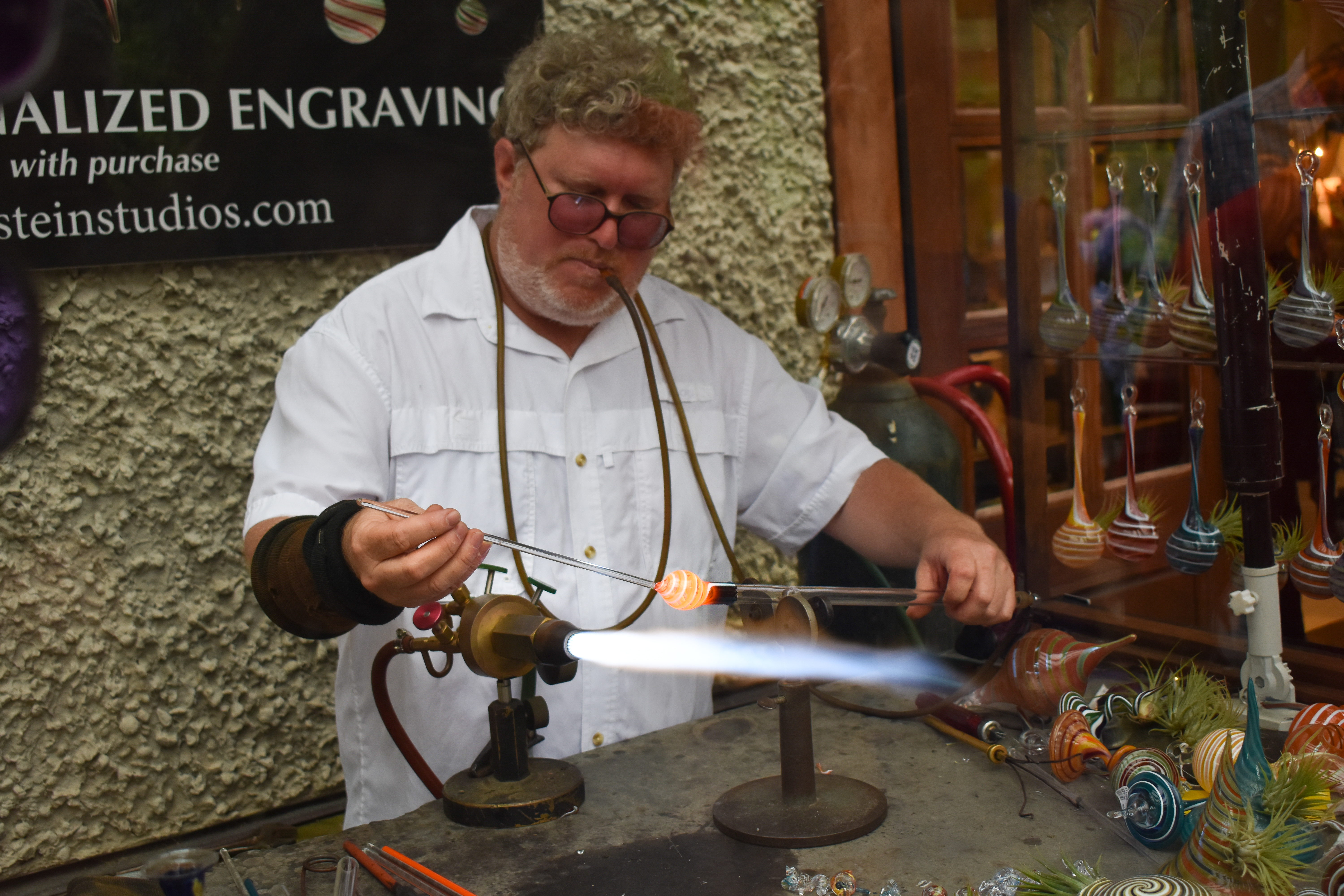 Biltmore Glass Blower Previous Next Published June 25, 2018 at 6000 × 4000 in A Weekend Getaway to Asheville, North Carolina In keeping with the Chihuly Glass Exhibit on display at Biltmore, Antler Hill Village featured glass sculpting demonstrations by local artist Jason Probstein.